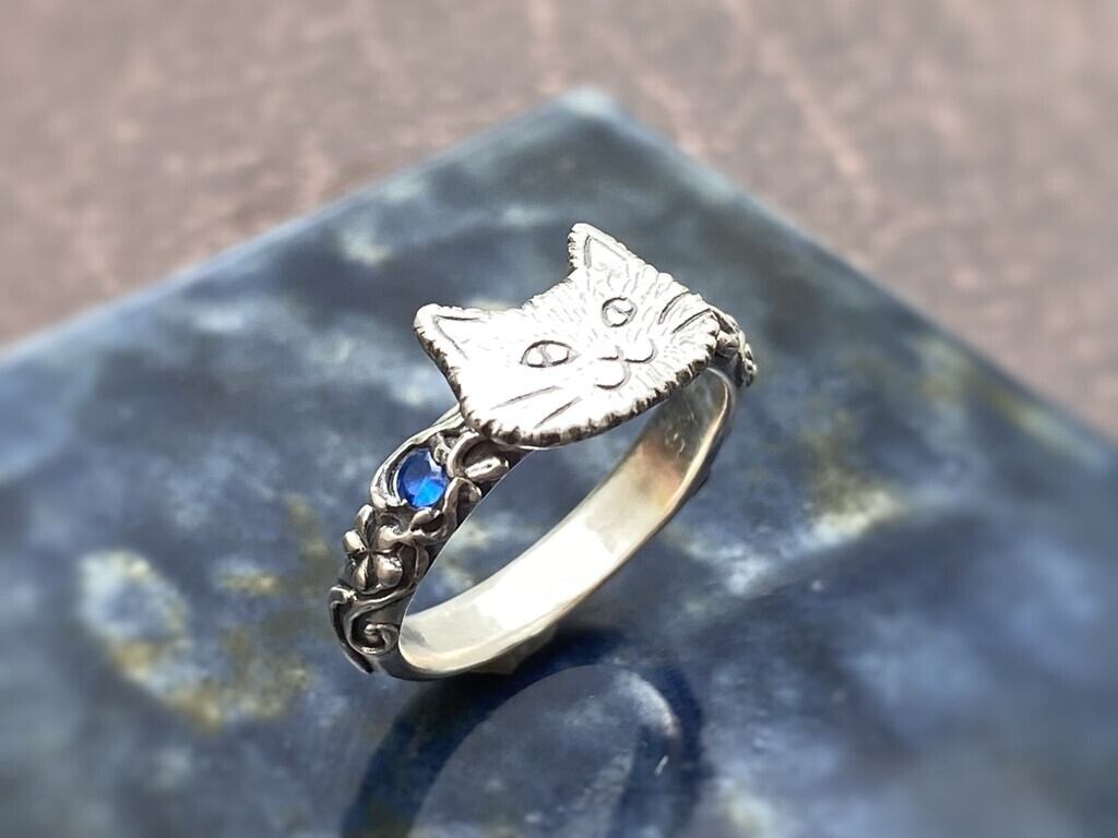 ブルーのCZ(キュービックジルコニア)をあしらった